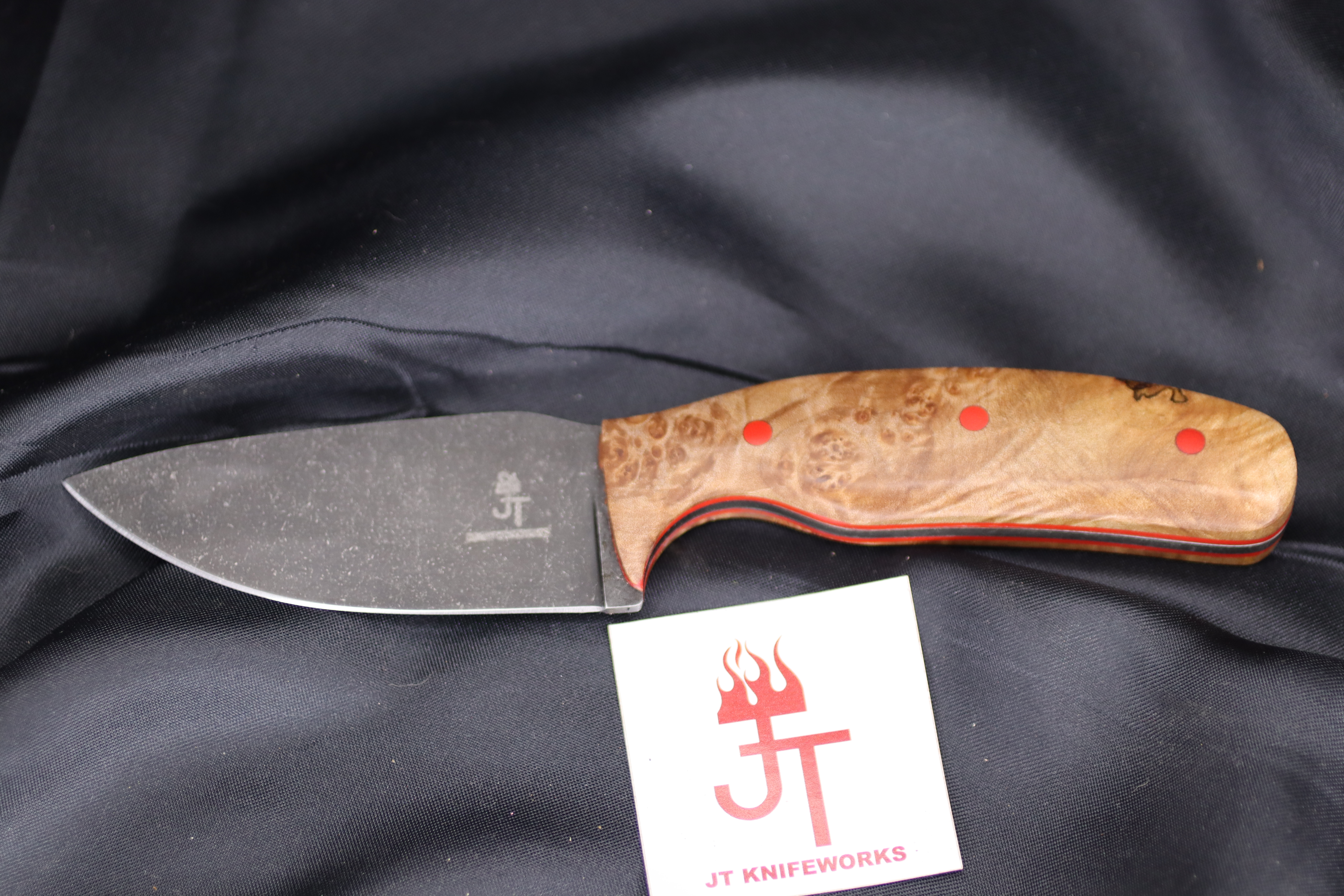 80CrV2 Capemaster with box elder handle scales and red pins 1224