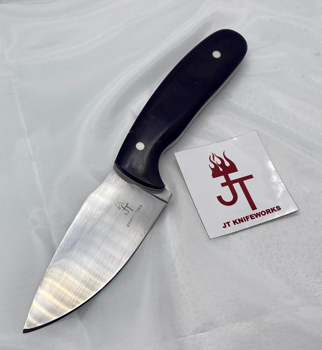 3 1/2" blade perfect for field processing your game. High carbon steel sharp and holds an edge. Price includes shipping within United States and discount for local pick up. Comes with hand made leather sheath.